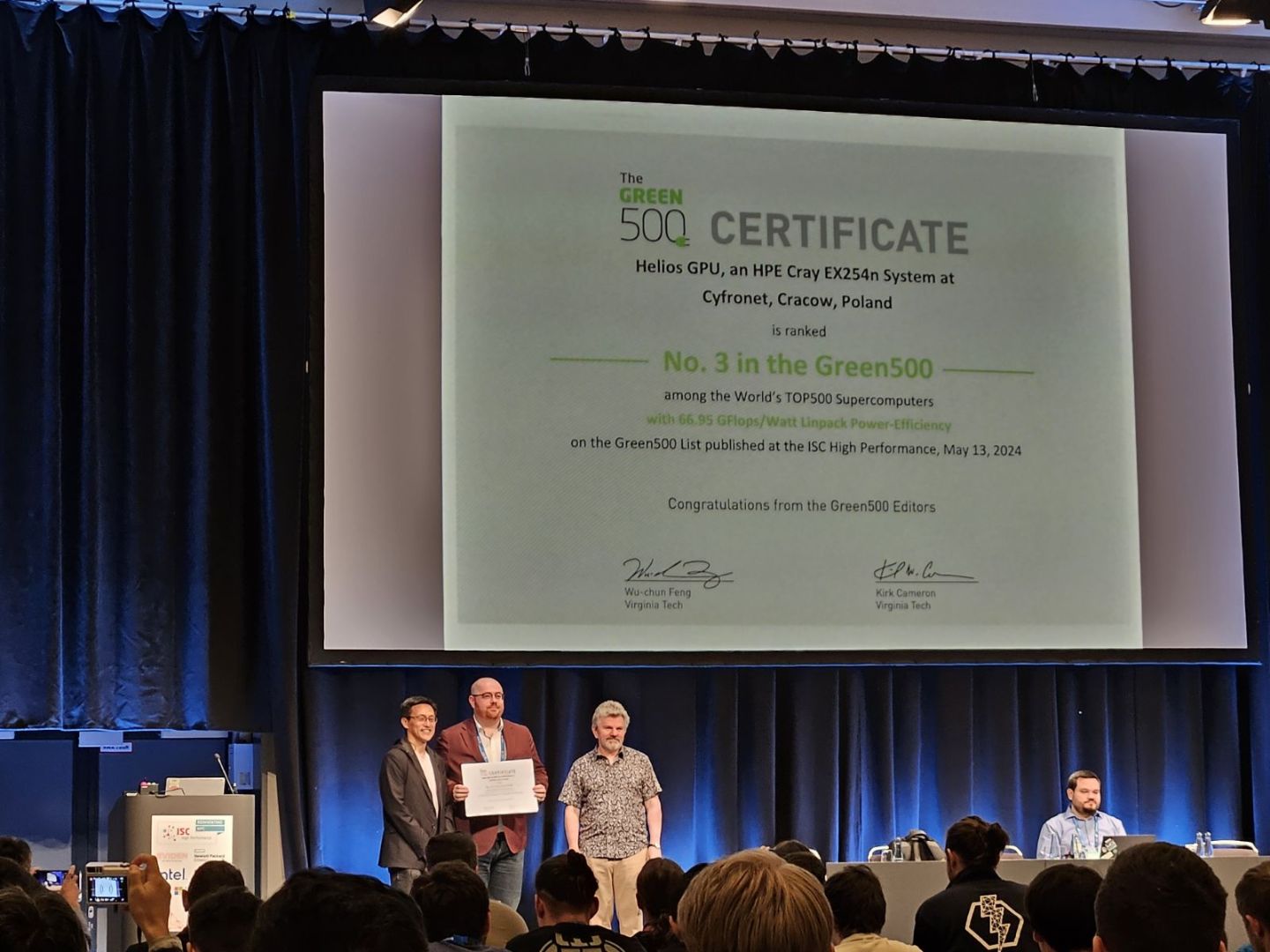 Cyfronet representatives participated in the conference, familiarizing themselves with the latest technologies and examples of their application. During the conference, Marek Magryś, Cyfronet's deputy director for High-Performance Computers, received a certificate for the Helios supercomputer gaining 3rd place on the prestigious Gren500 list of the most energy-efficient supercomputers in the world. Additionally, the TOP500 list of the world's fastest supercomputers was announced, with Cyfronet machines taking 4 places.